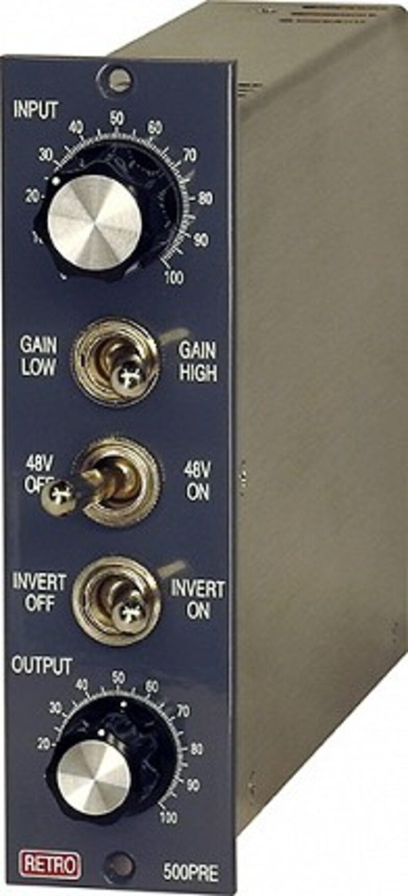 The 500PRE tre-rørs forforsterkertrinn viser den samme detaljrikdommen og dybden. Som med alle Retro-produkter, leveres følelsen av den musikalske ytelsen med Retro Instruments 500PRE. Forvrengning, støy og frekvensrespons på 500PRE er enestående; men overlastkarakteristikker avsløres ikke vanligvis av standardmålinger. 500PRE-rørene begrenser signalet elegant ved +18 dBu. Enten du bare ønsker rent gain eller presser 500PRE inn i overdrive, vil det aldri høres plastaktig og sprø ut som ofte solid-state forsterkere kan. Transiente detaljer er uten restriksjoner.