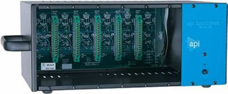 The API 500-6B lunchbox is a 6-slot rack designed to accept all API standard 5.25" X 1.5" modules. This quality allows an engineer the flexibility to bring along specialized EQ effects to any situation: 550A, 550b or 560. The lunchbox has an internal power supply with a rear panel selected AC voltage switch and a removable power cord. The input/output jacks are XLR. The lunchbox comes standard with a +48 volt internal phantom power supply, bussed to pin 15 for interface with the API 512c Mic Preamplifier.