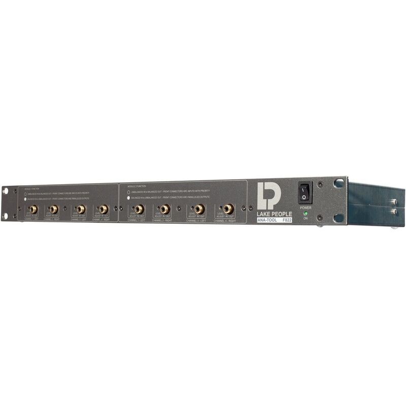 Lake People F822 er en 8-kanals analog linjeomformer designet for å tilpasse lydnivåer mellom profesjonelt studioutstyr (+6 dBu) og forbrukerlyd (-10 dBV). Enheten håndterer nivåtilpasningen med høy presisjon og minimal forvrengning, noe som gjør den egnet for mastering, kringkasting og liveproduksjon der ulike standarder skal integreres.