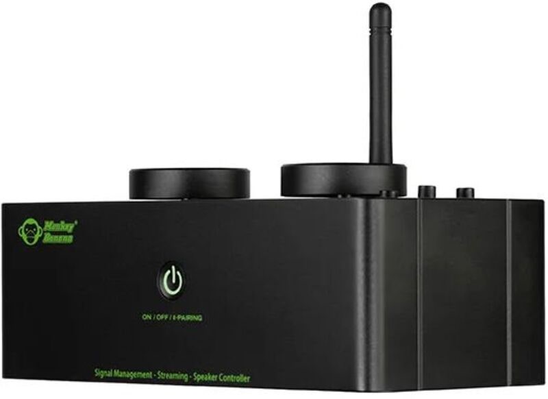 Monkey Banana Zookeper har både trådløs og trådbunden lydoverføring mellom senderen og Zookeepern. Denne kontrollenheten er egnet for hi-fi-opsætninger i stua, gaming, musikkproduksjon, presentasjoner og mye mer. Bluetooth-sendingen er i 2.4GHz. 1 USB-C kabel, 1 RCA 2m kabel, og "anti-slip feet" er inkludert. Koble den til din smartphone, høyttalere, mixer, DAW, eksterne forsterkere, ditt stereo- eller hjemmekinosystem. I tillegg kan du enkelt veksle mellom signalkildene. En digital utgang finnes for enheter med digital input. Zookepern kan brukes til å gjøre jobben som en monitorkontroller for studiemonitorer i ditt studio, eller på annen måte.