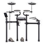 TD-02-serien gir deg verdens beste digitale trommekunnskap på begynnernivå – til en overkommelig pris. Med støtte av tiår med V-Drums-innovasjoner er disse kompakte og meget uttrykksfulle trommesett mye større enn summen av delene. Alle deler jobber sammen for å skape en komplett musikalsk grunnmur, fra lyd i verdensklasse og ultraraske pads til innebygde øvingsverktøy, sterk hardware og praktiske funksjoner for å redusere støy når du spiller hjemme. Og med utvidelsesmuligheter som Bluetooth®-tilkobling for mobile enheter, oppgraderbare pads og mye mer kan du enkelt utvide ditt oppsett med ekte Roland-tilbehør når behovene endres. TD-02KV er toppmodellen i serien og har en virvelpad med nettvev for naturlig akustisk trommestokkfølelse og et robust stativ med fire ben og en bred spillestilling i akustisk stil. Trommesettet har også tre pukpads, en stille basstrumpedal uten klubbe og tre cymbalpads (hi-hat, crash og ride).