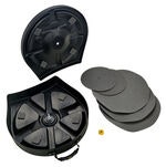 De 5 mellomleggene i foam forhindrer at cymbaler skurer mot hverandre, og sentrumsskruven sikrer at de ligger på plass i kabinettet.