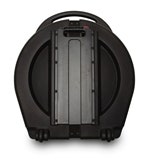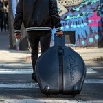 På baksiden finnes to hjul og et oppfellbart håndtak. Når du skal ut på turné, drar du bare Zildjian's Rolling Cymbal Vault etter deg som en koffert.