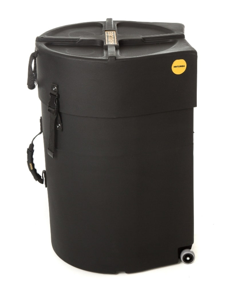 HNTUMBA har et grepvennlig håndtak for at du smidig skal kunne bære den med deg samt et lengre håndtak slik at du kan dra den etter deg på de to gummihjulene som sitter i bakkant på caset. Du lukker det enkelt med justerbare k Clipsespenner som sitter på remmer slik at du kan tilpasse lengden avhengig av høyden på din trumma.