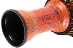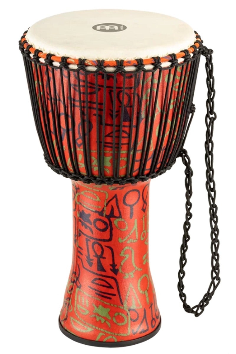 Djembe med lett skall av syntetmaterial med geiteskinn. Finish i symbolsk Pharaoh's Script.