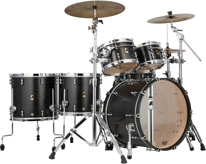 Artikkelnummer 1087137Trommesett Equinox, 10"/12"/14"/16"/22", shellpack, stammer i Padauk & lønn, Single Flanged Hoops, Satin Flat Black