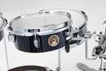 4-delt skallsett, BD- 18"x 3,5", Virvel 12"x4", 2 stk pukor uten resonansskinn 10"x 3,5" respektive 13"x 3,5". Settet leveres med en MC69 pukklamp.