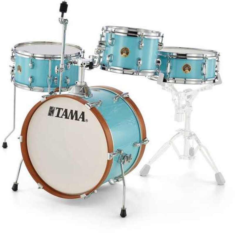 Kompakt trommesett som forvåner både med sin lyd og sitt praktiske format. Ingen stativ.