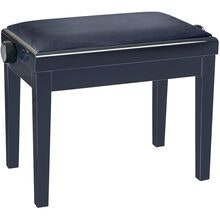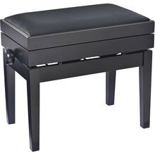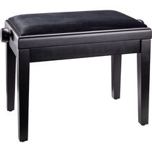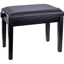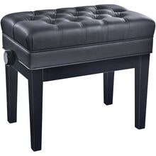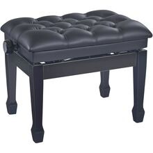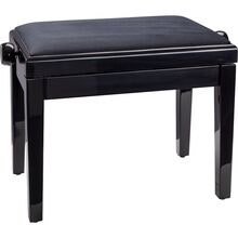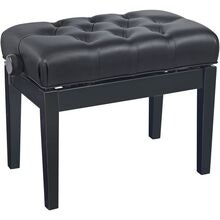 Deluxe høydejusterbar pianokrakk i massivt tre, svart høyglans finish med quiltet kunstskinnsete