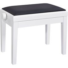 Høydejusterbar pianokrakk i massivt tre, hvit matt finish med svart kunstskinnsete