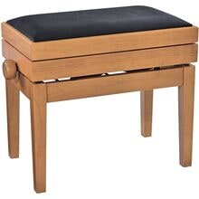 Høydejusterbar pianokrakk i massivt tre med oppbevaring, natur matt finish og svart veloursete